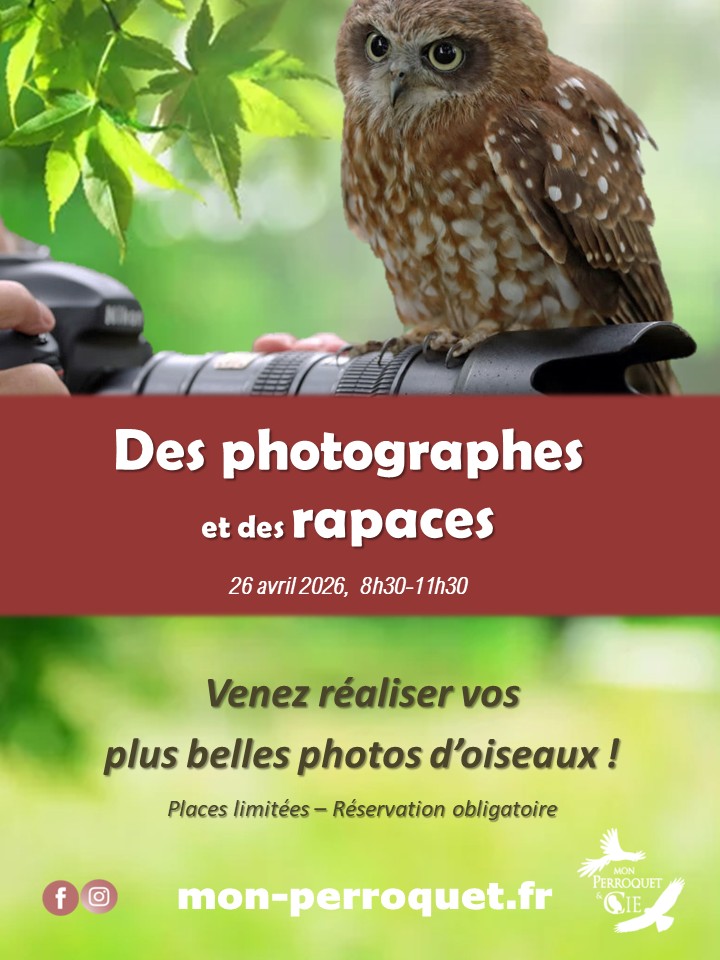 « Des photographes et des rapaces » se déroulera le Dimanche 26 avril 2026 de 8h30 à 11h30. (Sous réserve des conditions météorologiques).